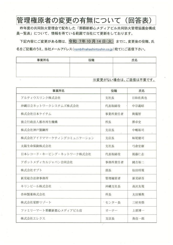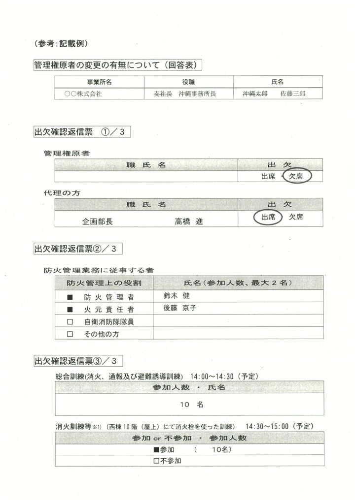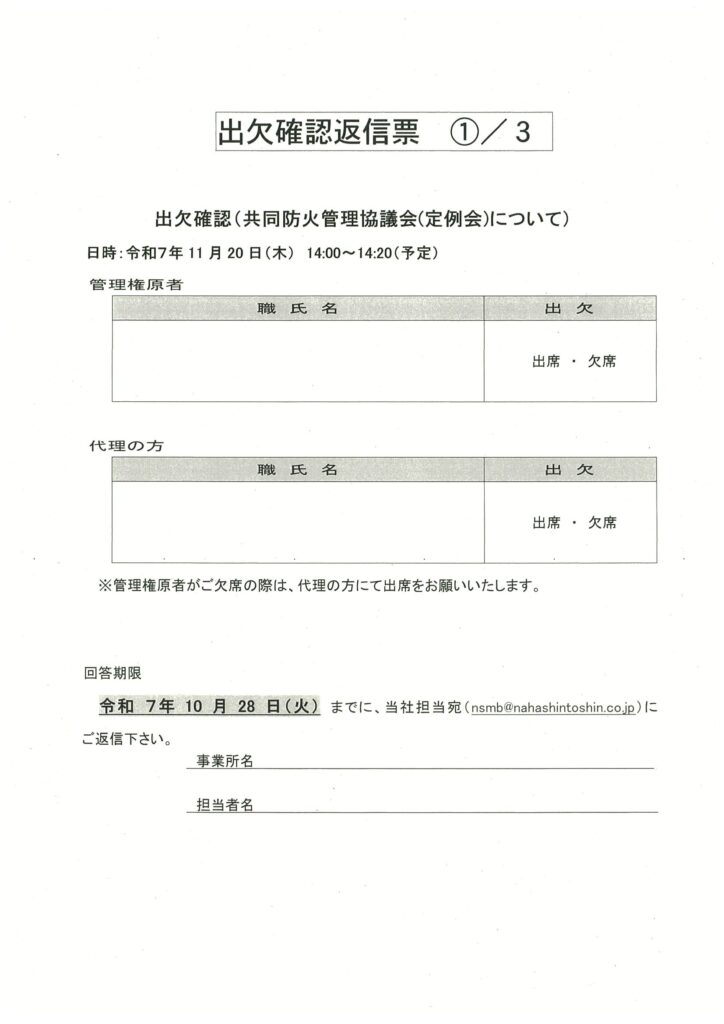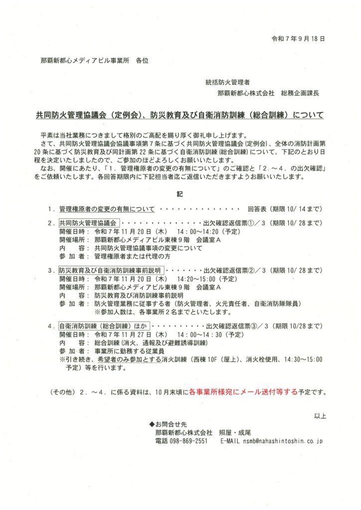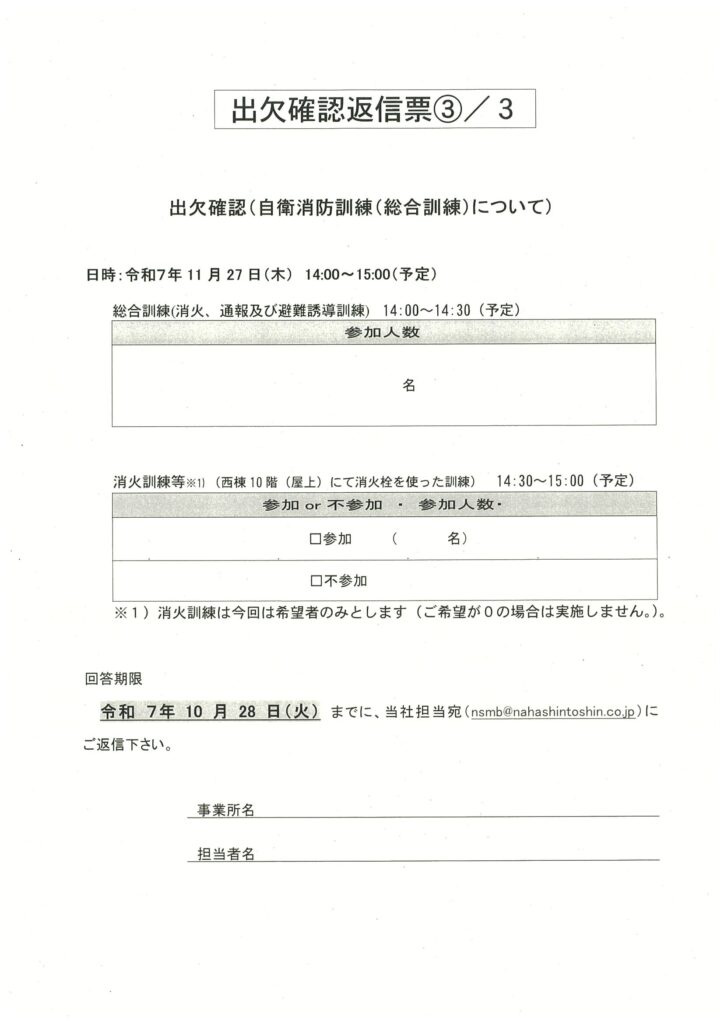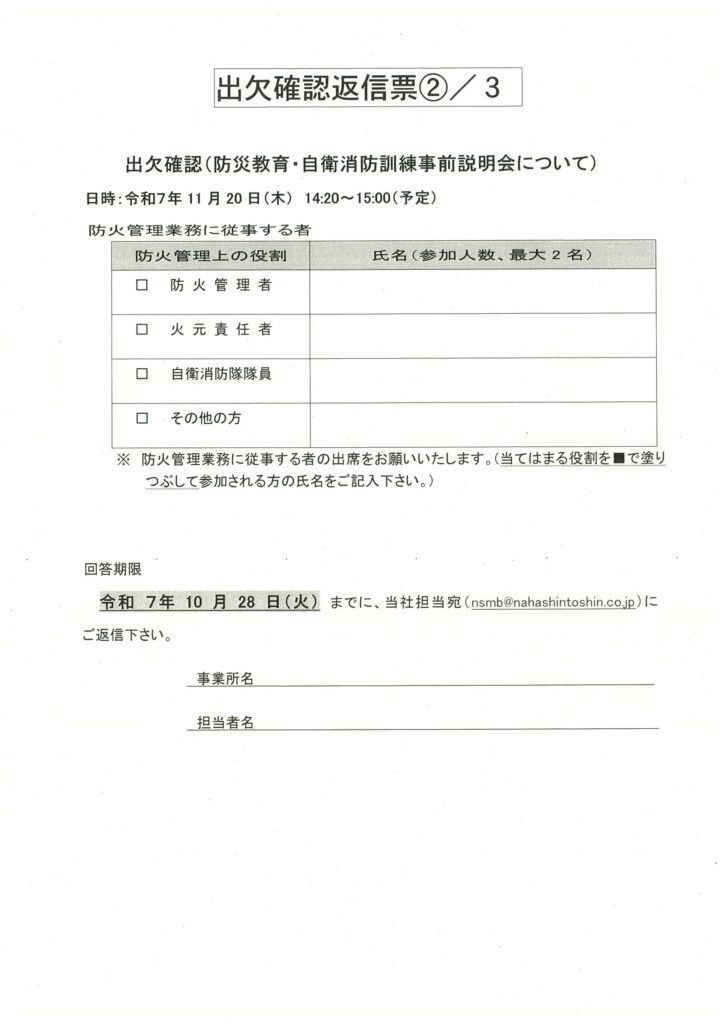 令和7年11月度消防関連案内及び出欠確認