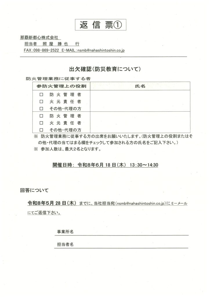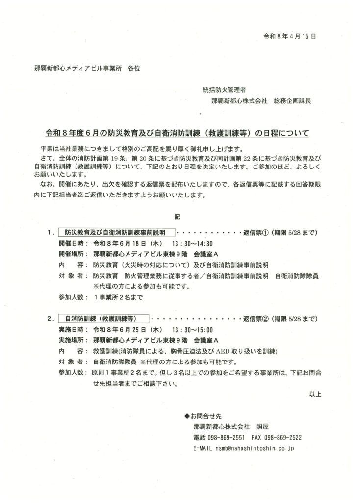 6月防災教育及び自衛消防訓練の日程について【NEW】