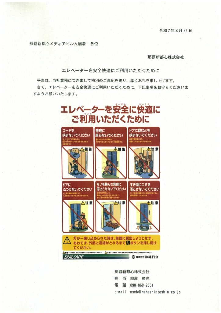 エレベーターを安全に快適にご利用いただくために